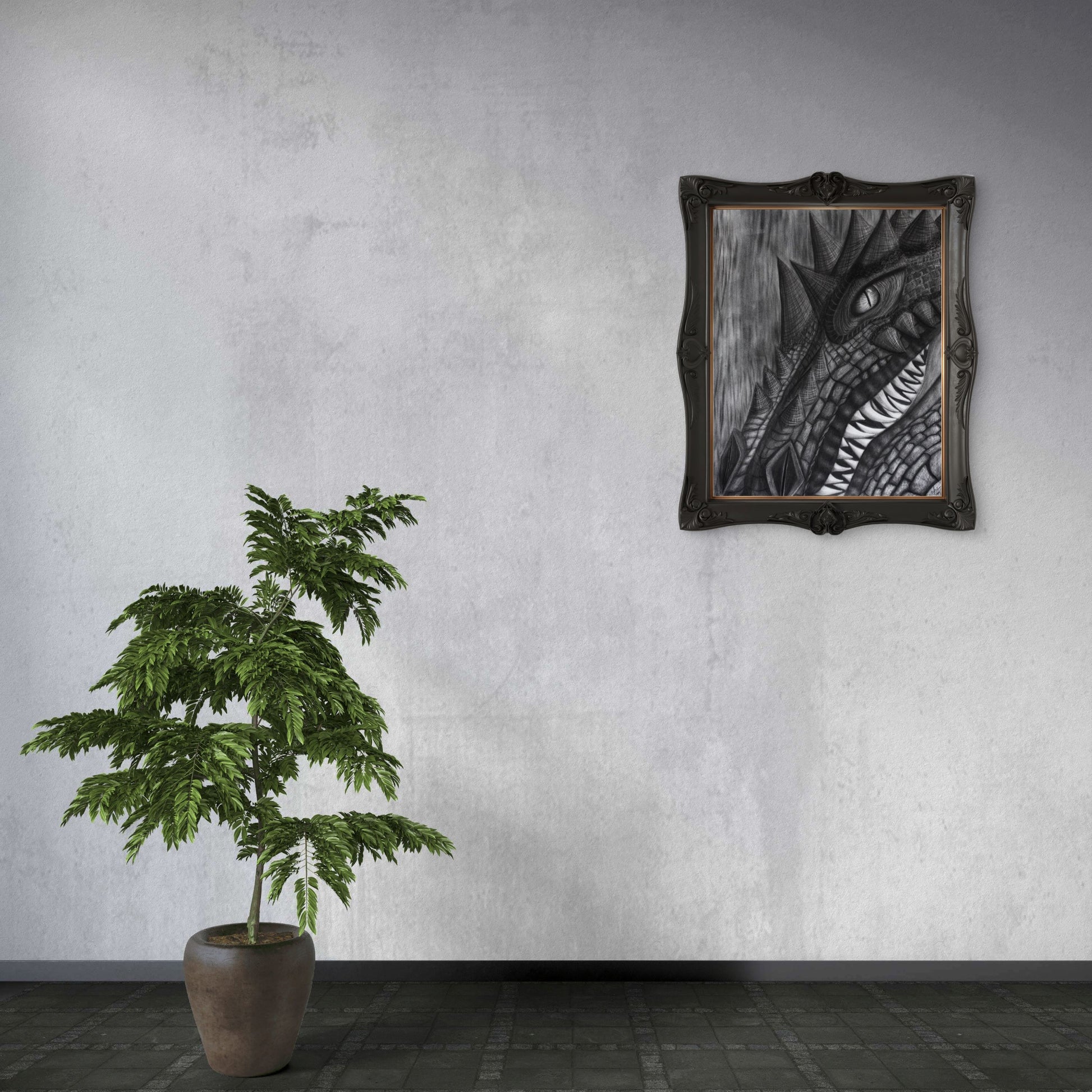 This evocative artwork transcends its draconic origins to become a profound exploration of elemental emotions. "Gaze of the Infernal" masterfully captures the dichotomy between unbridled rage and formidable strength, while its fiery composition evokes an almost palpable sense of desire and intensity.