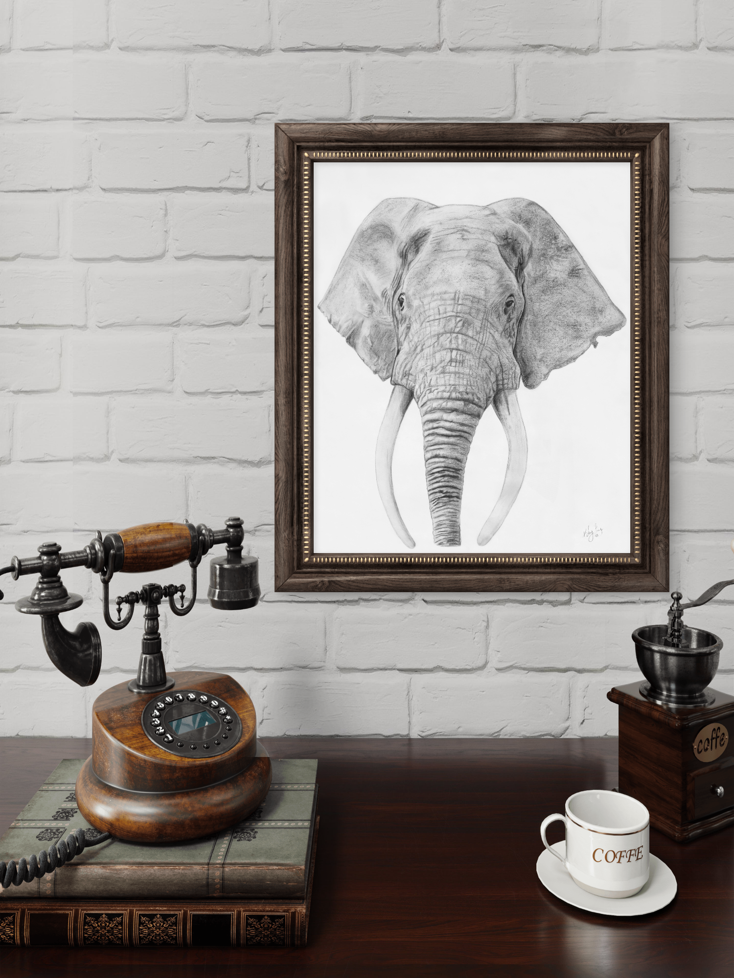 This hyper-realistic charcoal drawing meticulously captures an African elephant's weathered texture, transforming each wrinkle into a narrative of time and experience. "Stories In Every Line" represents the pinnacle of technical precision in my artistic journey, demonstrating control of light, shadow, and detail. While my creative path has since moved away from hyper-realism, this pivotal piece endures as evidence of the deep interrelationship between rigorous artistic technique and the sublime beauty of nature.