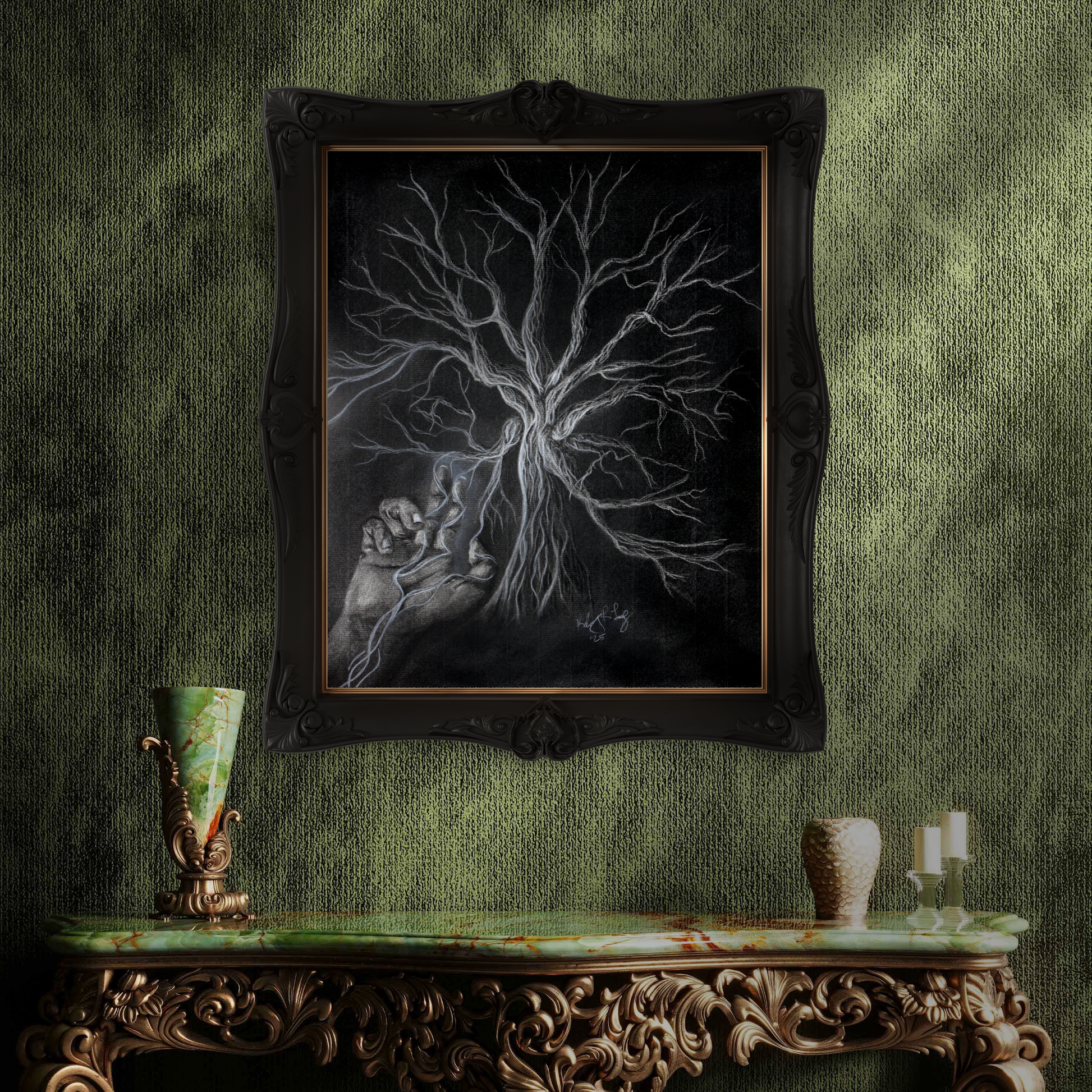 This piece is a meditation on the magic that lives within you- unseen, often dormant, yet deeply rooted. It speaks to the act of self-summoning, of calling forth growth in even the darkest places.