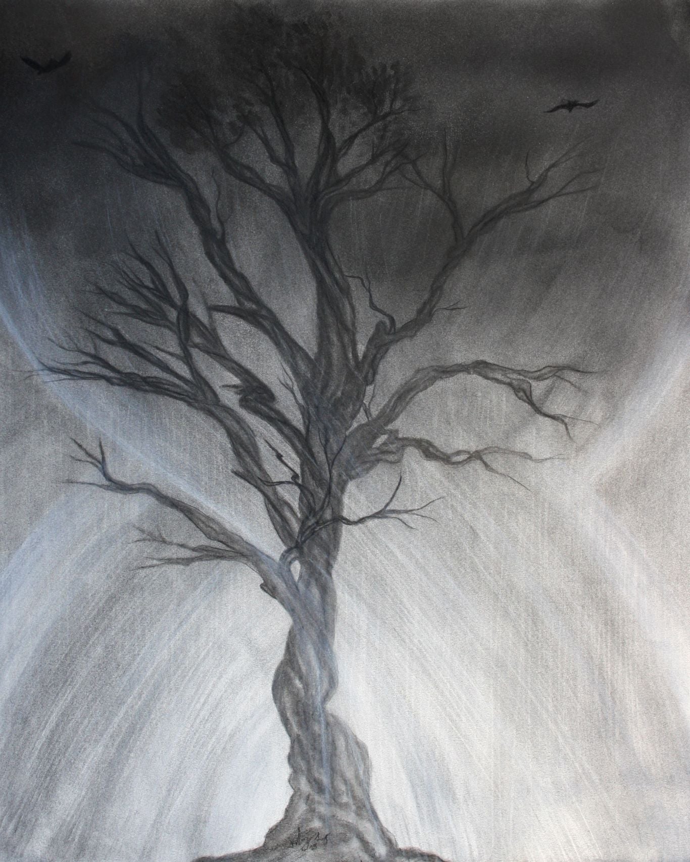 "The Reward" stands as the triumphant conclusion to a visionary trilogy, capturing a moment of profound metamorphosis. What began as a humble vine, extracted from earth by a humble bird, now manifests as a splendid tree blossoming amid rainfall. The precipitation forms a distinctive hourglass pattern around the trunk, creating a temporal paradox where growth and achievement exist in perpetuity. This elegant visual narrative eloquently embodies the consolidation of self-discovery and the apex of existential enlightenment.